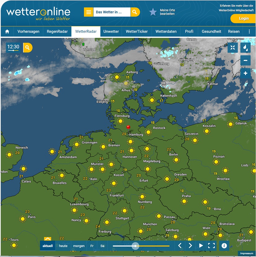 Man sehe das obigen Bild Wolkenradar auf wetter-online.de: So einen wolkenlosen Himmel über Deutschland